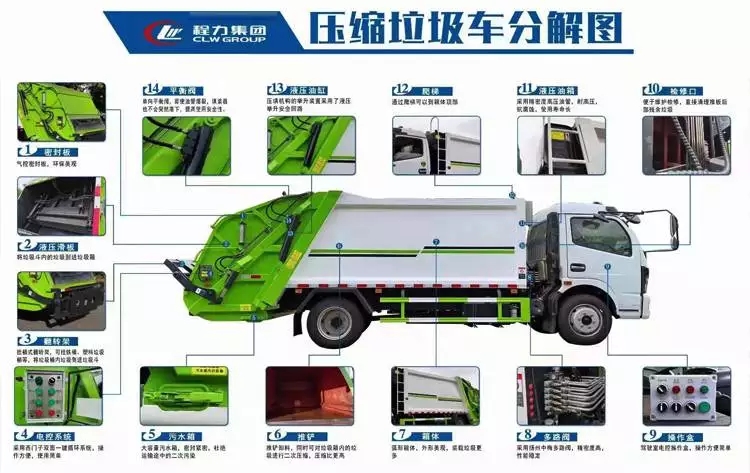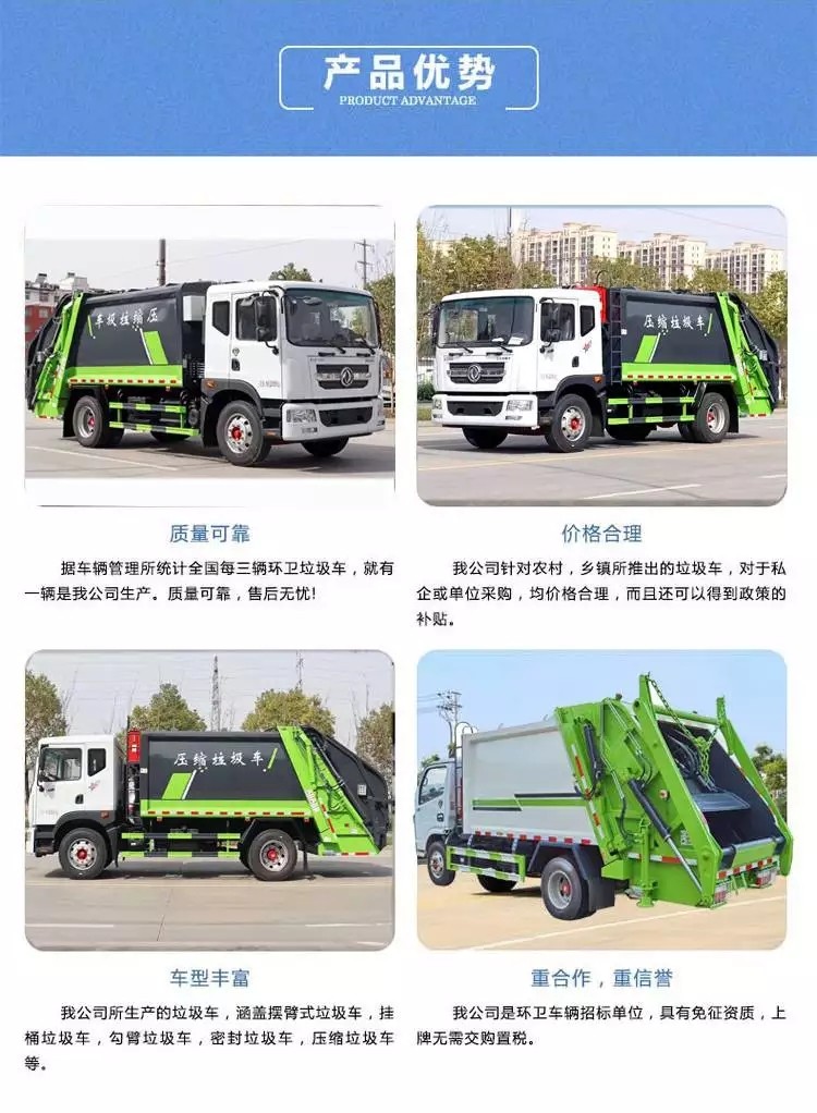 加工定制:是品牌:程力威牌车型:中型垃圾车类型:压缩式垃圾车外观颜色:白色底盘型号:EQ1185LJ9CDE发动机型号:YCS04200-68罐体容积:12立方米外形尺寸:7960*2500*3250mm排量:4156额定装载质量:7305kg乘员/座位数:3燃油种类:柴油额定功率:147kw最高车速:105km/h