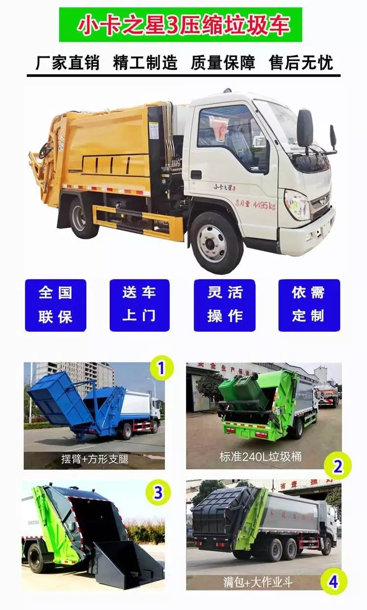 2吨小型垃圾压缩车 福田小卡4立方箱体容积-压缩垃圾车-湖北沃克莱特种汽车有限公司-水罐消防车|消防洒水车